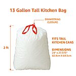 Model: Amazon Basics 13 Gallon Tall Kitchen Drawstring Trash Bags, Unscented, 10% Post Consumer Recycled, 120 Count