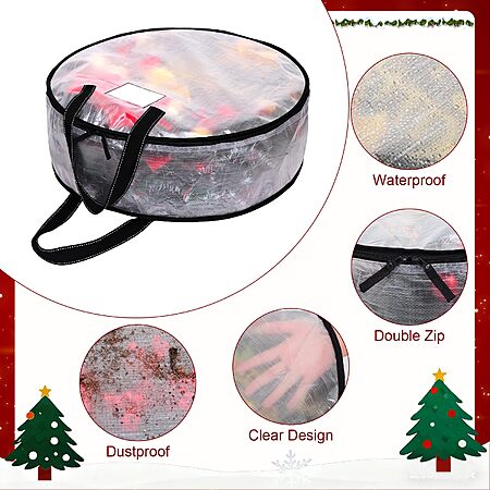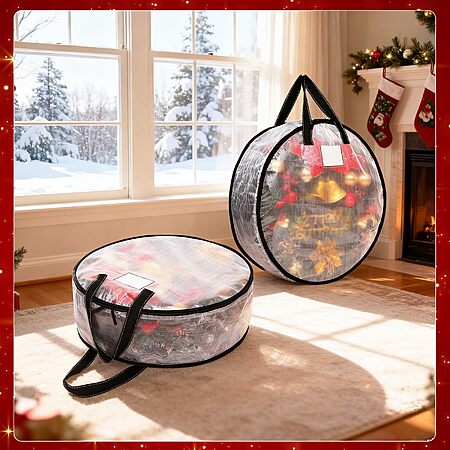 2 Pack Clear Christmas Wreath Storage Container, 24 x 8 Inch Wreath Storage Bag - $7.79