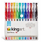 Model: KINGART Glitter Gel Pens Set – 12 Vibrant Colors, Soft Grip 2.5mm Pens for Adult Coloring, Art and Fine lines
