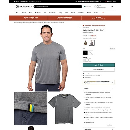 Sierra Designs Alpine Start Sun T-Shirt - Men's - Color Unlimited Grey Heather, S $14.98