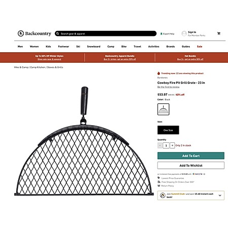 Barebones Cowboy Fire Pit Grill Grate - 23 in Black, One Size $53.97