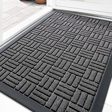 OLANLY Front Door Mat Outside Entrance 29.5x17, Absorbent, Heavy Duty Sturdy Natural Rubber Doormat Indoor Outdoor, Stain and Fade Resistant, Non-Slip $8.49