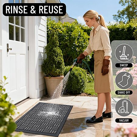 - [EASY-CARE DOORMAT FOR EVERYDAY USE] Keeping OLANLY front door mat clean is quick and straightforward. Shake, vacuum, or rinse with water—then it's ready for use. This simple care routine helps maintain a neat entrance with minimal effort.
