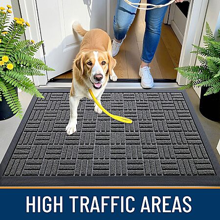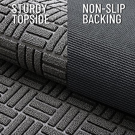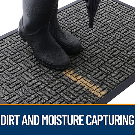 - [CAPTURES DIRT AND MOISTURE] The surface of the OLANLY door mat is made of woven polyester fabric featuring deep grooves to effectively trap dust, mud, and debris. The sturdy, beveled rubber edge prevents water pooling, ensuring a dry, clean entrance even in rainy or snowy conditions.