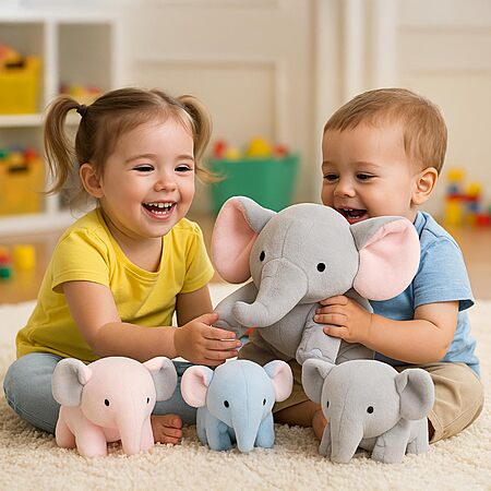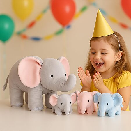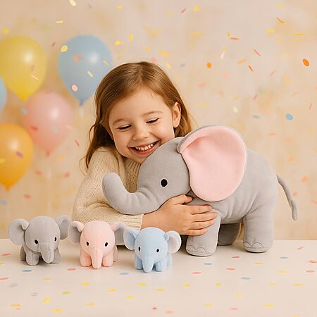 - Complete Elephant Family Set: Includes 1 large plush elephant (10.6" tall, 14" long) with 3 mini baby elephants (gray, blue, pink; each 3" x 5.1") for imaginative play and decoration