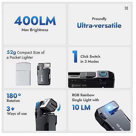 WUBEN G5 Rechargeable 400 Lumens EDC Flashlight, Dual Light Sources Mini Flashlight with RGB Light, Portable Pocket Flashlights $16.55