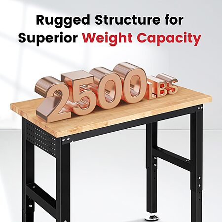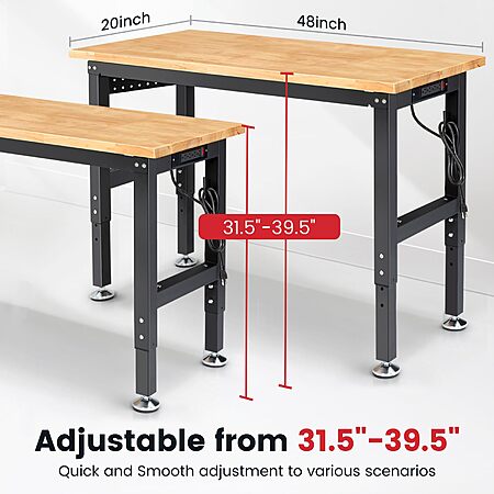Amazon.com has Workbench for Garage 48 Inch Work Bench Table Adjustable Height Rubberwood Tabletop Work Table with Power Outlets for Woodworking Shop Home Office Electronic Cutting Wood on sale for $105.99 when you click the coupon. Shipping is free.