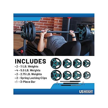 US Weight 54 LB Perfect Barbell Weight Set for Home Gym with 55” padded Bar - $69.99