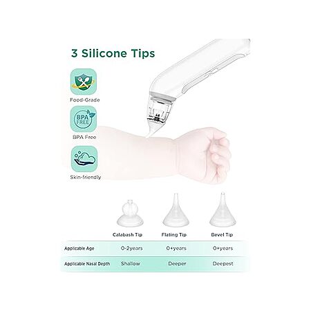 - Soft & Safe Silicone Tip: Food-grade, BPA-free silicone gentle on baby's nose (0–12 years)