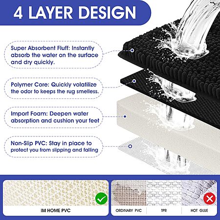 • Superior Absorbency: Deep chenille pile quickly absorbs water to keep bathroom floors dry and tidy