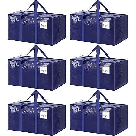 6 Pack Extra Heavy Duty Large Moving Bags with Strong Zipper & Comfortable Handles $19.99