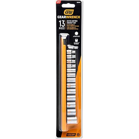GEARWRENCH 13pc 1/4" Drive 6 Point Metric Hi-Viz Socket Set, 80302H