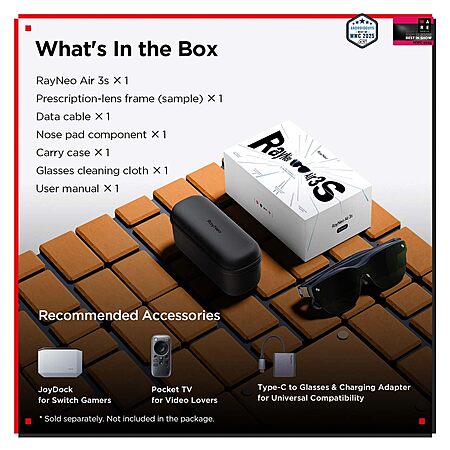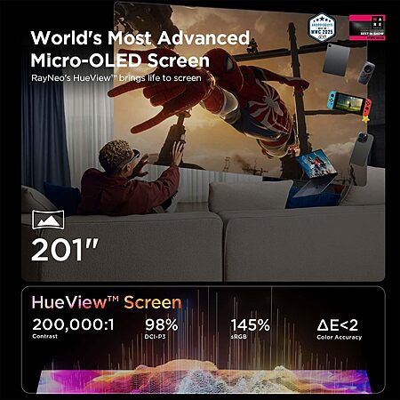 Model: RayNeo Air 3s AR/XR Glasses, 201" 120Hz FHD HueView Display, Portable AR Video Eyewear Gaming Glasses for iPhone 17, 16/15, Android, Mac, Switch, PS5, Steam Deck - Next-Gen Wearable Theater