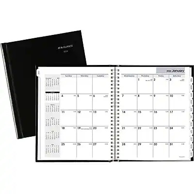 AT-A-GLANCE 2026 DayMinder 7" x 8.5" Monthly Planner w/ Faux Leather Cover (Black)