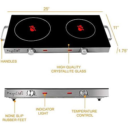 $48.27 | MegaChef Ceramic Infrared Double Cooktop, 25 Inch, Black at Amazon