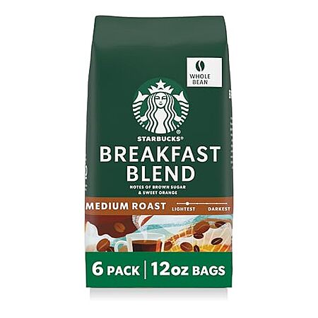 [S&S, AC] $32.74* | 6-Pack 12-Oz Starbucks Whole Bean Medium Roast Coffee (Breakfast Blend) at Amazon ($5.46 each)