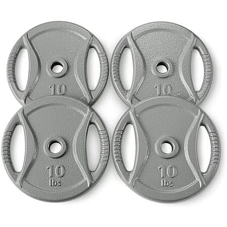 $34.19 | 4-Pack 10-Pound Amazon Basics 1-Inch Cast Iron Grip Weight Plates at Amazon