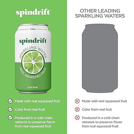 Model: Spindrift Sparkling Water, Lime Flavored, Made with Real Squeezed Fruit, 12 Fl Oz Cans, Pack of 24 (Only 4 Calories per Can)