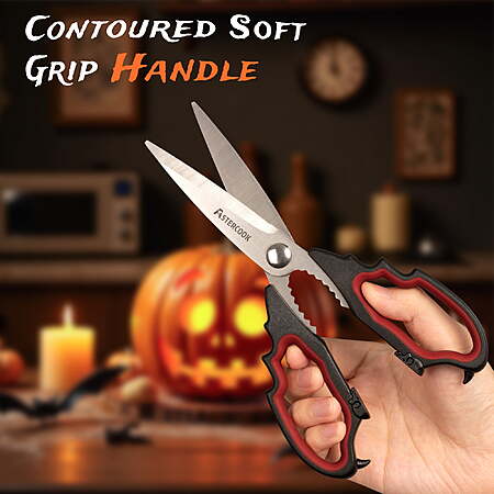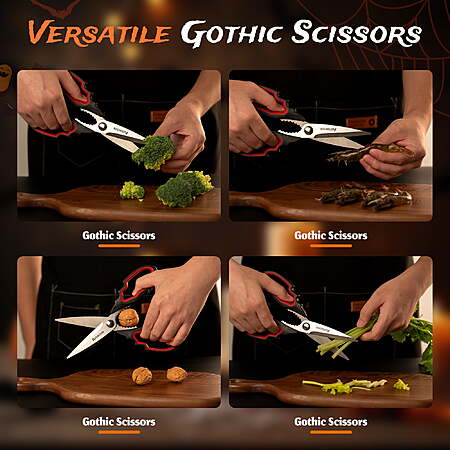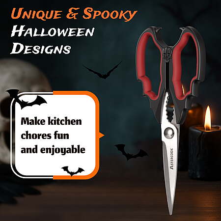 | Product Description: | 🎃Festive & Spooky Halloween Design Bring spooky vibes to your kitchen this Halloween with our skull-themed kitchen scissors — where festive fun meets everyday functionality. Designed with a bold, creepy-cute skull handle and gothic details, these shears are the perfect seasonal touch for your haunted kitchen setup. 🔪 Practical, Durable & Gift-Ready Whether you're prepping party snacks, carving pumpkins, or unboxing spooky treats, these scissors handle it all with ease. Made from durable stainless steel, featuring a comfortable grip and dishwasher-safe design, they’re not just a Halloween decoration — they’re a hardworking kitchen essential. Surprise a Halloween-loving friend or treat yourself to a tool that’s both frightfully stylish and seriously practical. 🎃 Multipurpose Kitchen Shears: Ideal for cutting meat, poultry, vegetables, herbs, packaging, and even light pumpkin carving. Your go-to scissors for both everyday tasks and festive food prep. 🎃 Spooky Halloween Design: Featuring a unique skull-themed handle and spooky aesthetic, these kitchen scissors add a festive, frightful touch to your Halloween cooking. A perfect blend of creepy and functional! 🎃 Ergonomic & Comfortable Grip: Designed with soft-touch, non-slip handles for a secure and comfortable grip. Whether you’re trimming herbs or cutting packaging, enjoy effortless control—even during long kitchen sessions. 🎃 Easy to Clean: Made from high-quality stainless steel and built for everyday use. Simply toss them in the dishwasher after use for quick, hygienic cleaning—no need to scrub by hand! 🎃 Perfect Halloween Gift: A fun and practical gift for Halloween lovers, home cooks, or spooky décor enthusiasts. Great as a hostess gift, party favor, or addition to your haunted kitchen setup. |