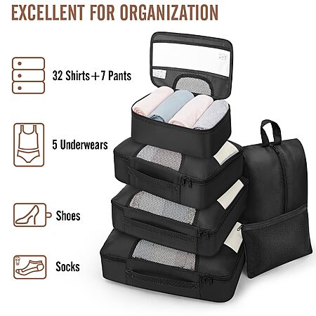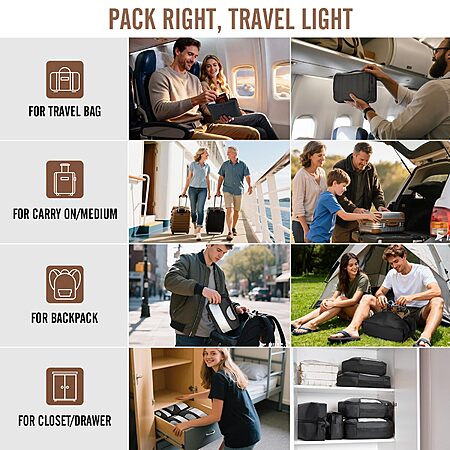 Model: 8 Set of Various Colored Packing Cubes for Suitcases in 4 Sizes(Extra Large, Large, Medium, Small),Veken Packing Cubes for Travel Accessories Travel Essentials, Suitcase Organizer Bags Set, Luggage Organizer Bags for Carry on Suitcases