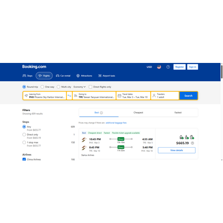 STARLUX Airlines, a global partner of Alaska Airlines via Booking.com have round trip airfares travelling from Phoenix (PHX) to Taipei Taiwan (TPE) for $665, nonstop. On this flight, you're allowed a personal item, a carry-on bag and 2 free checked bags. These cabins are luxury with inflight meals curated by Michelin-star chefs. Alaska Airlines Mileage Plan members can earn and redeem miles on STARLUX flights.