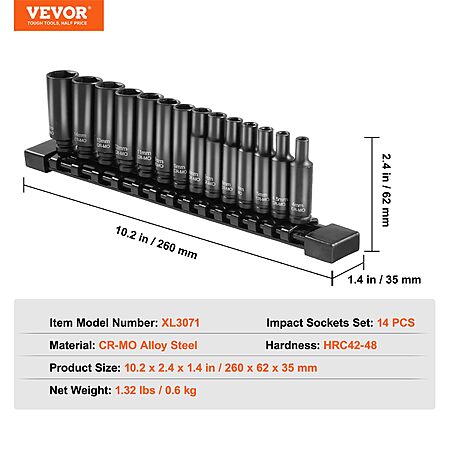 VEVOR 1/4" Drive Impact Socket Set, 14 Piece Deep Socket Set Metric 4-15mm, 6 Point Cr-Mo Alloy Steel for Auto Repair, Socket Organizer $16.90 +FS w/Prime