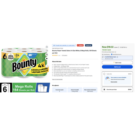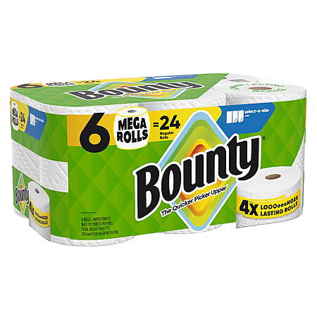 Features:- Pack contains 6 Mega Rolls of white Bounty Select-A-Size Paper Towels