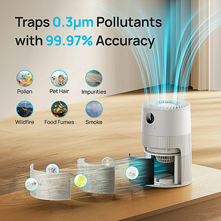 | Product Description: | ❓ Struggling with cooking smoke and pet dander? Indoor air can be 2-3 times more polluted than outdoors, and up to 100 times during smoking, cooking, or cleaning. With 90% of your time spent indoors, clean air is vital for your health. 🔰 The DREO HEPA air purifier features a precision DC motor that helps improve indoor air while using 50% less energy. The 3-in-1 filter captures 99.97% of pollutants as small as 0.3 microns, effectively tackling wildfire smoke, dust mites and pollen with ease. Choose from 7 night light colors, and add your favorite essential oils for a personalized scent, keeping your air fresh and clean. 🍀Effective Large-space Purification With a CADR of 119 CFM, the DREO Air Purifier Macro AP504 cleans up to 774 sq. ft. per hour or cycles air 4.8 times hourly in 155 sq. ft. space, as tested to standard 10 CFR 430. 🍀Compact Yet Powerful Delivers fresh air to bedroom, kitchen, or office—helping to alleviate asthma, allergies issues caused by pet hair, dust mites, or seasonal changes. 🍀Advanced 3-in-1 HEPA Filter Effectively captures 99.7% of pollutants as small as 0.3µm, keeping your home's air clean and fresh while easing asthma and allergies. Ideal for pollen, wildfire seasons, or pet-heavy households. 🍀Multi-scenario Purification Choose from 4 speeds and 2 modes (Normal/Sleep). Sleep mode minimizes noise to 22dB together with an auto-dimming screen to ensure uninterrupted, peaceful rest. 🍀Sustainable and Energy Efficient DREO air purifier uses 50% less energy than traditional AC models thanks to its advanced DC motor. It also features a 12-hour timer for added convenience. 🍀Know Everything at a Glance The LED display lets you easily monitor fan speed, timer settings, filter change reminder, night light color and mode adjustments, child lock status, and more. 🍀Room-filling Aroma This air purifier includes an aroma pad for your favorite scents, enhancing air freshness throughout the space (Search DREO aroma pad DR-HPA028). High Efficiency Air Purifier, Covers 1488 sq. ft/2h or 744 sq. ft/h 4 Fan Speeds, 2 Modes for Sleep and normal LED display lets you easily monitor Sleep Mode for 22dB 3-in-1 HEPA Filtration RGB light with 7 colors Child locks for safety Room-filling Aroma 【Click Here】Air Purifier filter for DR-HAP004 White$35.99 【Click Here】Air Purifier Aroma Pads for DR-HAP004 $9.99 What's Included: Air Purifier with HEPA Filter x 1 Quick Start Guide x 1 User Manual x 1 |