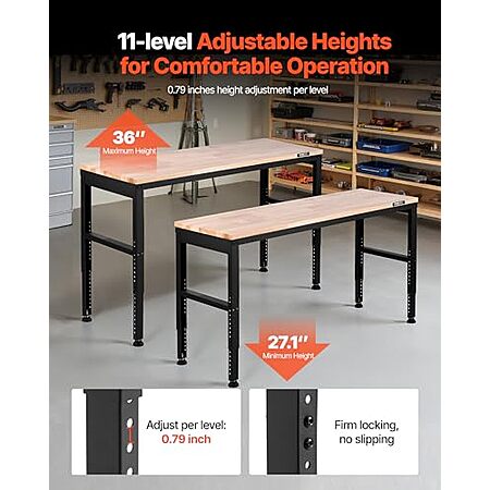 $121.24 | VEVOR Adjustable Workbench, 2000 lbs Capacity, 61 x 20-inch at Amazon