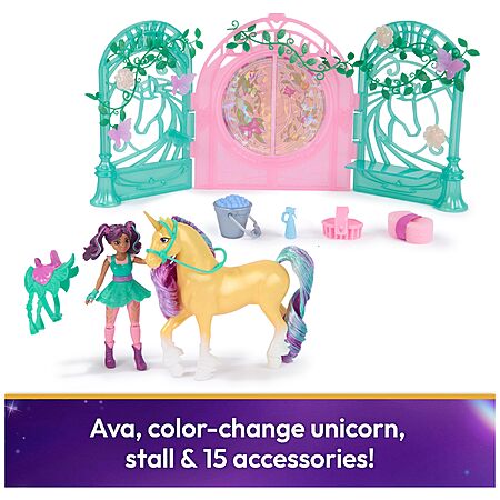 Unicorn Academy: Ava Doll & Color-Change Leaf Stall Playset w/ 15 Accessories for