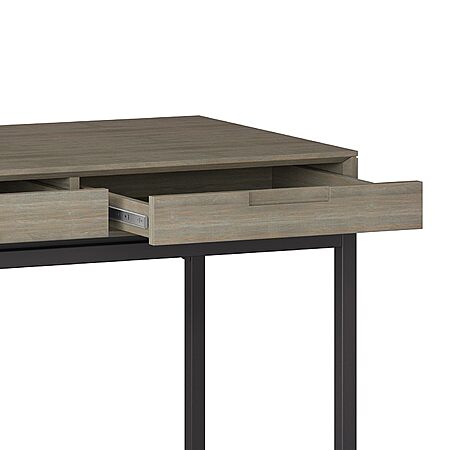 72" SIMPLIHOME Solid Hardwood Banting/ Writing Desk w/ 2 Drawers & Flip-Down Keyboard Tray (Distressed Grey) for