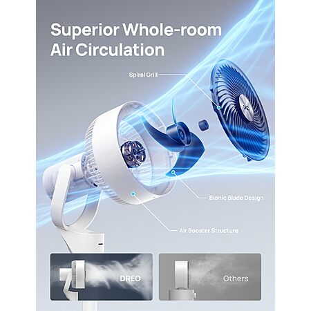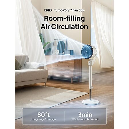 Features:- 𝙐𝙡𝙩𝙧𝙖 𝙋𝙤𝙬𝙚𝙧𝙛𝙪𝙡 𝘼𝙞𝙧 𝘾𝙞𝙧𝙘𝙪𝙡𝙖𝙩𝙞𝙤𝙣: The TurboPoly Fan 306 room fan powered by DREO's advanced airflow tech circulates air up to 80ft away to circulate all the air in your bedroom, living or kitchen in under 3 min. (DR-HPF006)