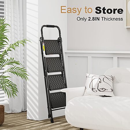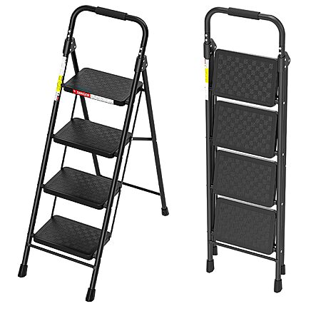 $49.99: HBTower 4 Step Ladder, Folding Step Stool with Wide Anti-Slip Pedal, Step Stool Foldable with Cushioned Handle for Home and Kitchen, Black