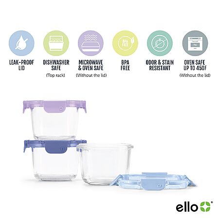 3-Pack Ello Color Lock 2 Cup Glass Meal Prep Set (Purple Rain) $11.81 + Free Shipping w/ Prime or on $35+