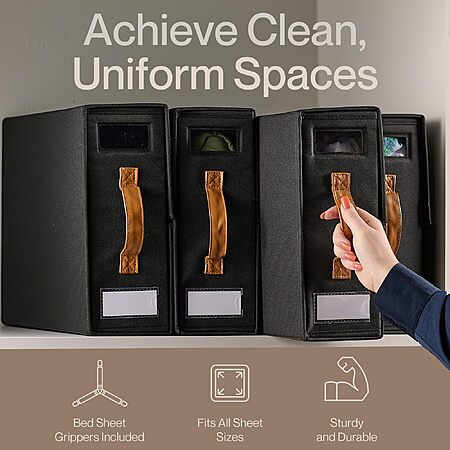 LOFT + IVY Sheet Organizers and Storage – Bed Sheet Holders Box for Linen Closet – Black, 4-Pack - $17.07