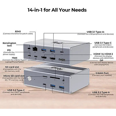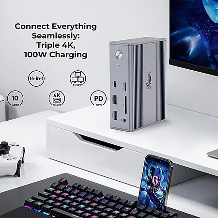Rosewill 100W PD Charging 14-in-1 USB C Laptop Docking Station with 4K@60Hz Display, Triple 4K Display $80 + Free Shipping