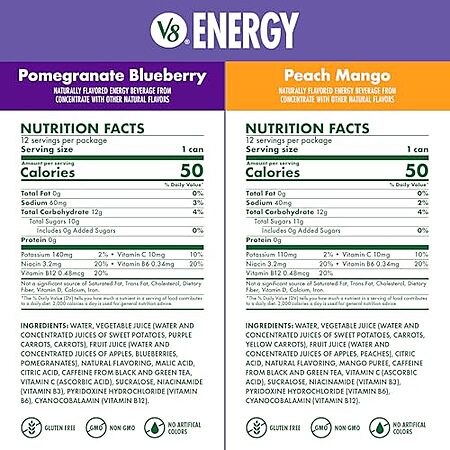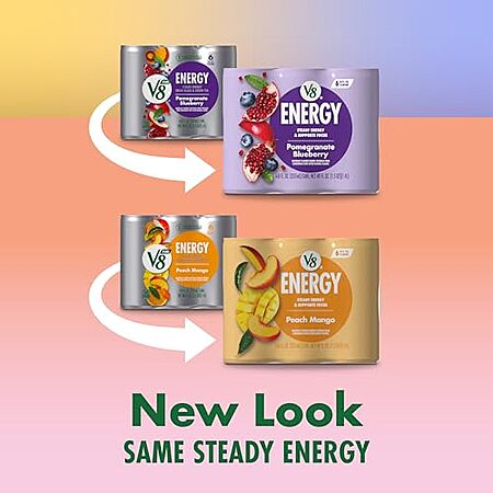 [S&S, AC] $11.38 | 24-Pack 8-Oz V8 Energy Drink (Pomegranate Blueberry, Peach Mango) at Amazon (47.4¢ each)