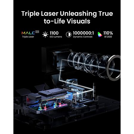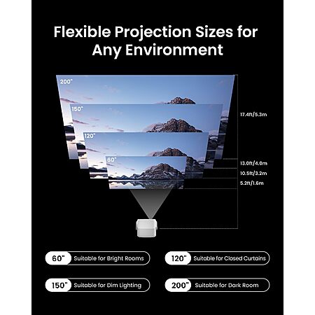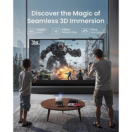 JMGO N1S 4K projector brings an immersive cinematic experience straight to your home. With 4K UHD resolution and HDR10, it delivers rich colors and high contrast for crisp, detailed visuals in every frame. Its 200 inch screen ensures a theater-grade experience without leaving home. 10W dual Dolby Audio speakers provide 360° surround sound, and Blu-ray 3D support offers unmatched realism when paired with active 3D glasses, creating a lifelike world.