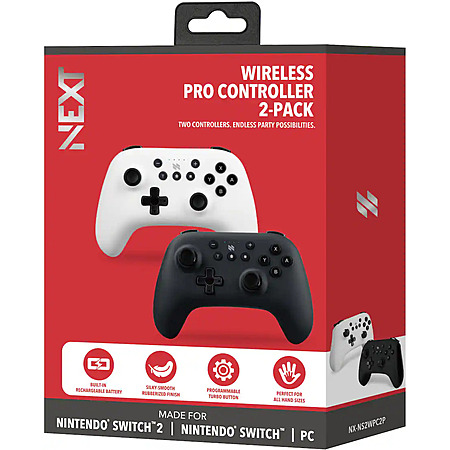 2-Pack NEXT Wireless Rechargeable Pro Controller for Switch & Switch 2 (Midnight & Frost) for