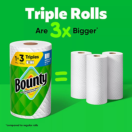 Bounty Select-A-Size Paper Towels, 3 x 6 TRIPLE Rolls, White or Prints (54 reg rolls total) $51 shipped Target, get a $15 Target Gift Card