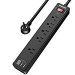 Power Strip with 5 AC Outlets and 3 USB Ports (1 USB-C), 1680J Surge Protection $9.98