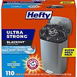 110-Ct 13-Gallon Hefty Ultra Strong Kitchen Trash Bags (Black, Clean Burst Scent)