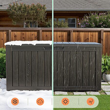 - Spacious 75-Gallon Capacity: This generously sized deck box provides ample storage for all your outdoor essentials. Perfect for neatly organizing patio cushions, garden tools, pool accessories, and seasonal items, it helps keep your outdoor space tidy and clutter-free
