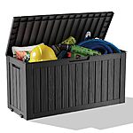 Amazon.com has 75 Gallon Outdoor Storage Box - Waterproof Resin Deck Box for Patio Cushions & Gardening Tools - Lockable Indoor/Outdoor Storage Bin - Sleek Black Design on sale for $43.05. FREE delivery.