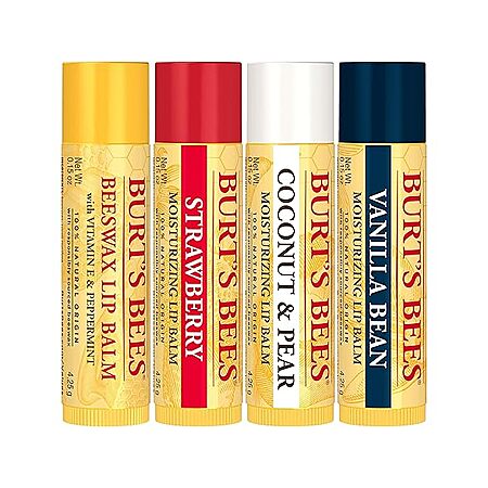 Burt's Bees Lip Balm Valentines Day Gifts, Beeswax, Strawberry, Coconut and Pear, and Vanilla Bean Pack, , 4 Tubes $6.99 WOOT PRIME FS Lim 3