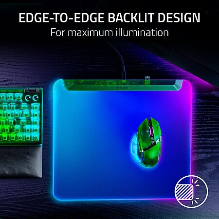 - EDGE-TO-EDGE BACKLIT DESIGN — Made for hardcore RGB enthusiasts, the mat's frosted surface catches and amplifies the glow of its powerful LED strip, achieving vivid illumination that spreads to every corner of the canvas