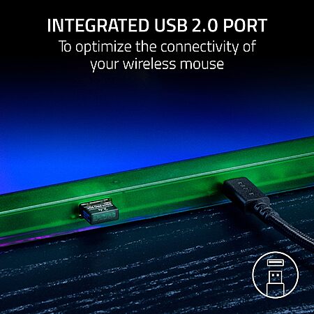 - INTEGRATED USB 2.0 PORT — The mat's built-in USB port allows the mouse dongle to be plugged in just inches away from the mouse, ensuring minimal interference and maximum wireless performance