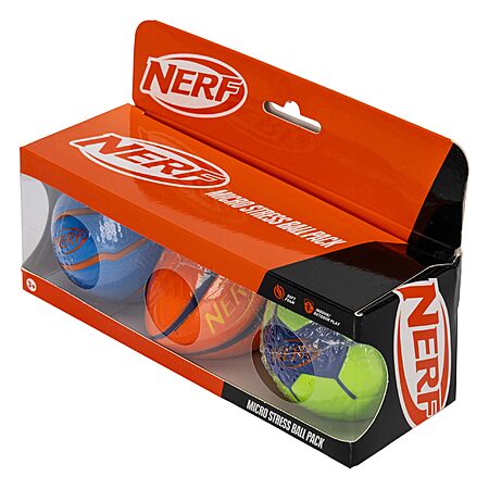 $5.59*:Nerf Mini Stress Foam Sport Ball Set - Kids Mini Sports Set - Includes Foam Micro Football, Soccer Ball + Basketball Soft Stress Relief Toy for Kids - Multicolor