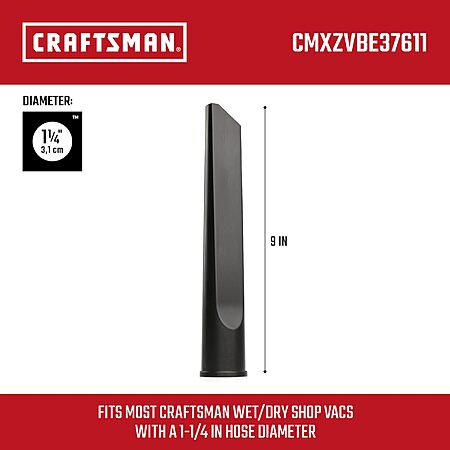 $5*:CRAFTSMAN CMXZVBE38611 1-1/4 in. Crevice Tool Wet Dry Vac Attachment, Industrial-Grade Shop Vacuum Accessory for Cleaning Tight Spaces, Fits 1-1/4 in. Hose Diameter