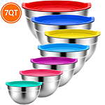 | Product Description: | ☞ Click here for 6 Pack Mixing Bowls with Lids,Rubber Base and Graters-MultiColor/Black/Khaki ☞ Click here for 6 Pack Mixing Bowls with Lids,Rubber Base-MultiColor/Black ☞ Click here for 6 Pack Mixing Bowls with Lids-MultiColor/Khaki ☞ Click here for 5 Pack Mixing Bowls No Lids-Silver ☞ Click here for 6 Pack Plastic Mixing Bowls with Lids-Green/Red Ombre ☞ Click here for 4 Pack Glass Mixing Bowls with Lids ☞ Click here for 5 Pack Mixing Bowls with Handmixer TINANA 7 pack stainless steel mixing bowls with lids are perfect for all your food prep needs. With sizes ranging from 0.7 to 7 quarts, you can mix, serve, marinate, and store food with ease and minimal mess. Plus, with tight-fitting lids, these stainless bowls for kitchen are great for storing food for longer periods. Save space in your kitchen with the space-saving nesting design of this stainless steel bowls set. These mixing bowls with lids set are dishwasher safe, making them easy to clean and maintain. Get your hands on this must-have set of mixing bowls for kitchen and take your cooking game to the next level! Stainless Steel Mixing Bowls with Lids Includes: 7 X Metal Mixing Bowl ( 7/4.5/3.0/2.0/1.5/1.0/0.7 QT ) 7 X Airtight Lids Premium Stainless Steel: The TINANA mixing bowls set is a must-have for your kitchen! These high-quality stainless mixing bowls with lids set are rust-resistant and durable, making them perfect for all your food prep needs. Use them as stainless steel prep bowls, serving bowls, or storage bowls. These stainless steel bowls for mixing feature a mirror-finish interior and fingerprint-proof exterior, making them not only functional but stylish. Various Bowl Sizes: The TINANA stainless bowls with lids offers larger sizes than standard stainless bowls set, making them perfect for larger servings. These stainless steel bowls with lids have depths that make them great for mixing large batters, tossing salads, washing vegetables, marinating, and storing food. Ranging from 0.7 to 7 quarts, these bowls provide the flexibility you need to handle any food prep task. Space Saving & Easy Cleaning: These stainless steel bowls with lids are well designed to nest all the bowls together in sequence, greatly saving storage space and make your kitchen look tidy and neat. Also, the shining surface of the bowls is nonstick and simple to clean by hand,or to go in the dishwasher for easy cleanup afterwards. Colorful Airtight Lids: The TINANA kitchen mixing bowls set comes with tight-fitting lids made of flexible BPA-free plastic. These bowls with lid fit closely to the salad mixing bowls, keeping your food fresh and well-preserved. They are great for storing food for longer periods, without worrying about spills or messes. Versatile and Space-saving: This versatile stainless steel mixing bowls with lids set is perfect for all your food prep needs. This nesting mixing bowls with lids set are dishwasher safe, making them easy to clean and maintain. Their nesting design allows you to stack and store them easily, saving you valuable counter and storage space. Whether you’re an experienced cook or just starting out, these stackable mixing bowls with lids will quickly become a staple in your kitchen. |